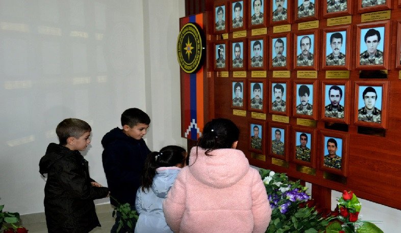 ԱԻՊԾ աշխատակցի մասնագիտական օրվա առթիվ, այսօր զոհված փրկարարներ Հարություն Աթաջանյանի, Արայիկ Հակոբյանի և Դավիթ Դոլուխանյանի ընտանիքների անդամներն ու երեխաներն այցելել են ծառայության վարչական տարածք, ծաղիկներ խոնարհել հայրենիքի պաշտպանության համար նահատակված փրկարարների հուշանկյունին: