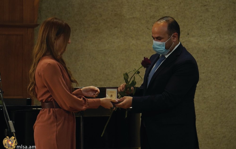Միջոցառման ընթացքում շնորհակալագրերով ու հուշադրամներով են պարգևատրվել սոցիալական պաշտպանության ոլորտում արդյունավետ գործունեություն ծավալած և ճգնաժամային պայմաններում առանձնահատուկ ներդրում ունեցած սոցիալական աշխատողները։