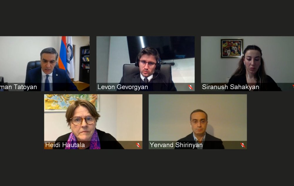 Բացելով քննարկումը՝ Եվրոպական Խորհրդարանի փոխնախագահ Հեյդի Հաուտալան համոզմունք է հայտնել, որ Եվրամիությունը կարող է կարևոր դեր խաղալ Արցախյան 44-օրյա պատերազմից հետո մարդու իրավունքների պաշտպանության ու երաշխավորման գործում։ Նրա խոսքով, ԵՄ-ն կարող է ավելի մեծ դիվանագիտական նախաձեռնողականություն դրսևորել, և հանդես գալ Հարավային Կովկասի երկրների հետ հարաբերությունների նոր ռազմավարությամբ։ Հեյդի Հաուտալան հատուկ ընդգծել է միջազգային առաքելություն գործուղելու