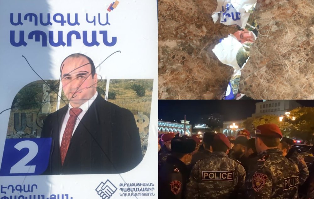 Ապարանի քաղաքապետի ՔՊ թեկնածուի պաստառները երեկ պատռել ու փչացրել են, մինչ նա առաջնագիծ էր մեկնել, իսկ Գնթունիքի Կարենի աջակիցները կառավարության առաջ ակցիայի էին մասնակցում
