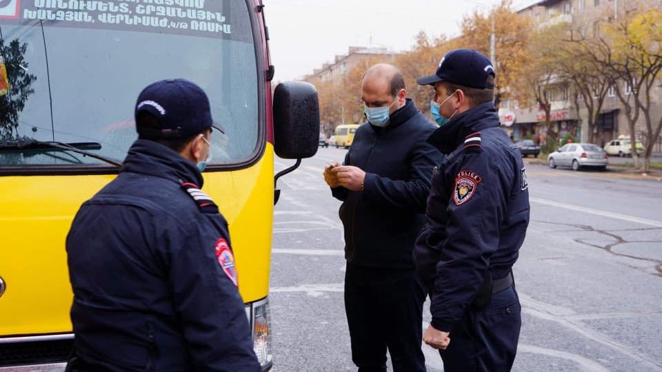 Այսօր՝ նոյեմբերի 26-ին ՀՀ քաղաքաշինության, տեխնիկական և հրդեհային անվտանգության տեսչական մարմինը ՀՀ պարեկային ծառայության հետ համատեղ վերահսկել է Երևանի Էրեբունի և Նուբարաշեն վարչական շրջանների հանրային տրանսպորտում հակահամաճարակային կանոնների պահպանման մակարդակը։
