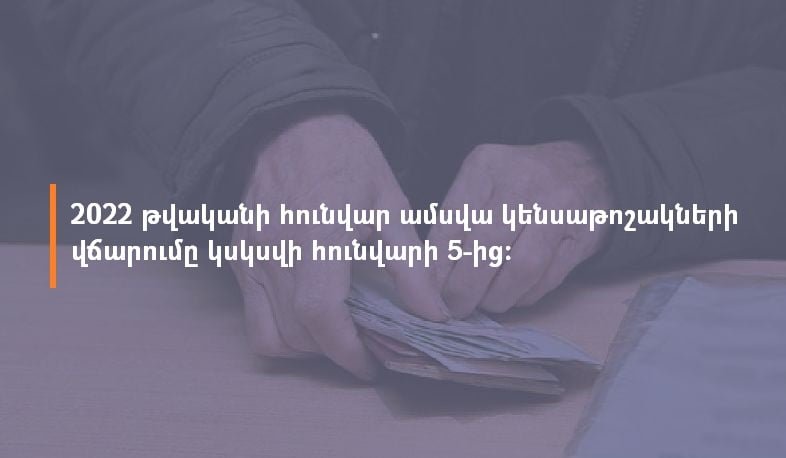 2022 թվականի հունվար ամսվա կենսաթոշակների վճարումը կսկսվի հունվարի 5-ից։