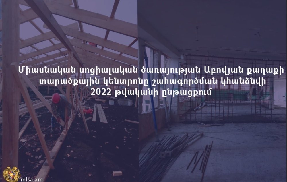 ՀՀ աշխատանքի և սոցիալական հարցերի նախարարությունից հայտնում են, որ ընթացքի մեջ են Միասնական սոցիալական ծառայության Աբովյան քաղաքի տարածքային կենտրոնի վերանորոգման աշխատանքները: