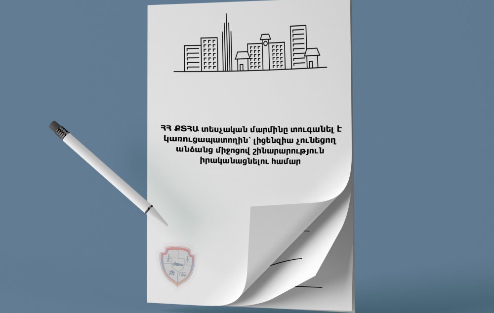 ՀՀ ՔՏՀԱ տեսչական մարմինը տուգանել է կառուցապատողին՝ լիցենզիա չունեցող անձանց միջոցով շինարարություն իրականացնելու համար