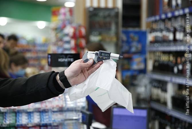 Երևանի քաղաքապետարանի և վարչական շրջանների աշխատակիցներն հունվարի 20-ի ստուգայցեր են իրականացնում և տուգանք կիրառում մինչև 50 միկրոն հաստությամբ պոլիէթիլենային պարկերի և տոպրակների օգտագործող առևտրի օբյեկտների նկատմամբ. այս մասին տեղեկացրին Երևանի քաղաքապետարանից։