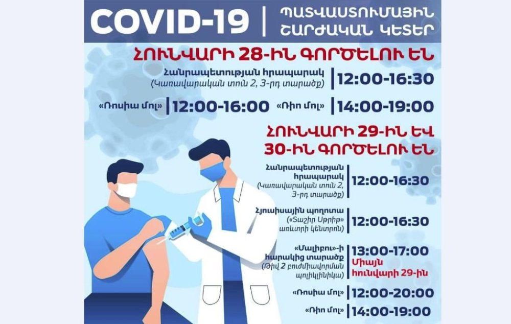 ՀՀ ԱՆ-ն COVID-19 պատվաստումային շարժական կետերի աշխատանքային գրաֆիկն է հրապարակել