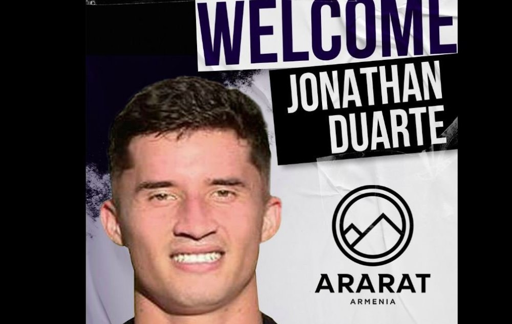 Հայաստանի ֆուտբոլի Պրեմիեր լիգայի առաջատար «Արարատ-Արմենիային» է միացել 24-ամյա կոլումբիացի կիսապաշտպան Խոնաթան Դուարտեն. հայտնում է ֆուտբոլային ակումբի մամուլի ծառայությունը: