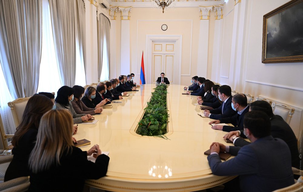 Սահմանադրության համաձայն՝ Հանրապետության նախագահի լիազորությունները ստանձնած՝ Ազգային ժողովի նախագահ Ալեն Սիմոնյանը նախագահական նստավայրում այսօր հանդիպել է Հանրապետության նախագահի աշխատակազմի հետ: