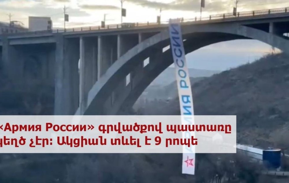 Փետրվարի 27-ին սոցցանցերում սկսեց տարածվել 3 վարկյան տևողությամբ տեսանյութ, որում Կիևյան կամրջից կախված է «Армия России» գրվածքով ահռելի պաստառ։ Գրում է media.am-ը։