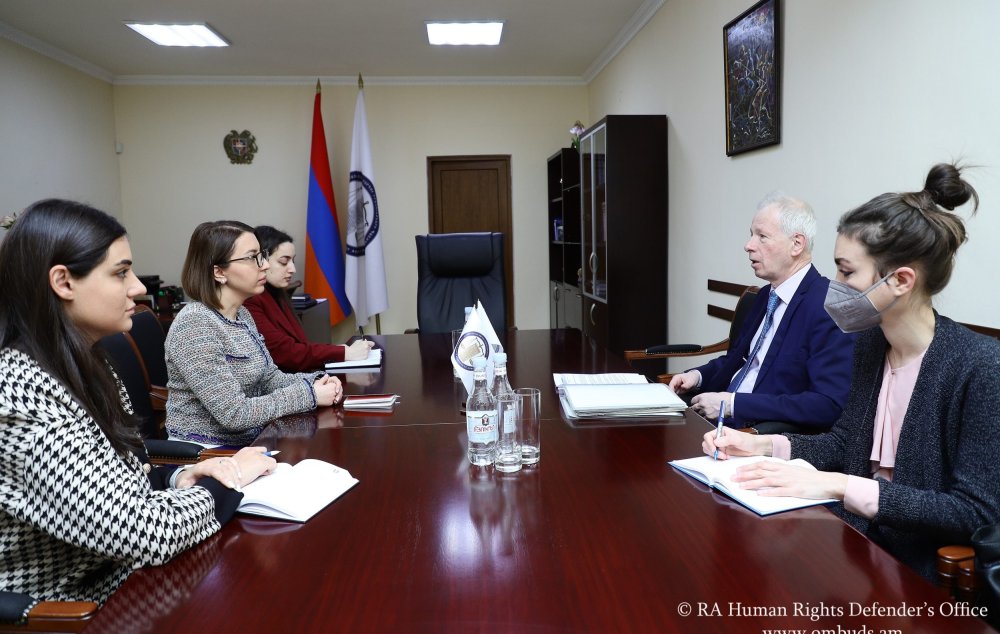 Պաշտպանը Դեսպանին ներկայացրել է «Մարդու իրավունքների պաշտպանի մասին» ՀՀ սահմանադրական օրենքով Պաշտպանին վերապահված լիազորությունների շրջանակն ու դրանց իրականացման համար տարվող աշխատանքներն ու ծրագրերը: