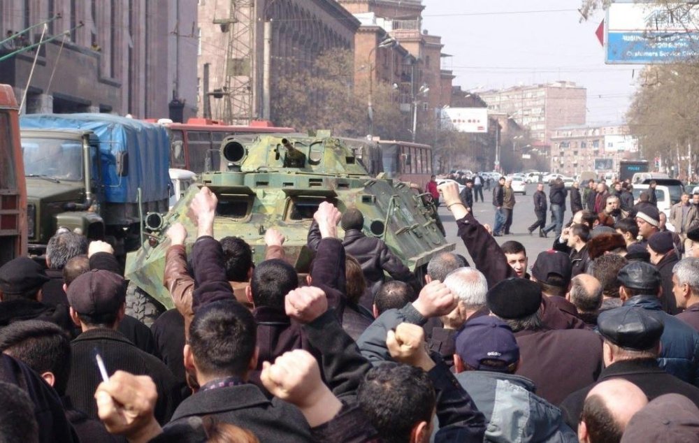 2008-ի նախագահական ընտրությունների արդյունքների դեմ բողոքող քաղաքացիների շուրջօրյա խաղաղ հավաքը մարտի 1-ի առավոտյան ընդհատվում է ոստիկանության հարձակմամբ։ Վերջիններս հայտարարում են, թե տեղեկություն ունեն հրապարակում զենք-զինամթերքի առկայության մասին։ Ոստիկանությունը հայտարարում է, թե օպերատիվ տեղեկություններ է ունեցել Երևանում զանգվածային անկարգությունների կազմակերպման մասին։