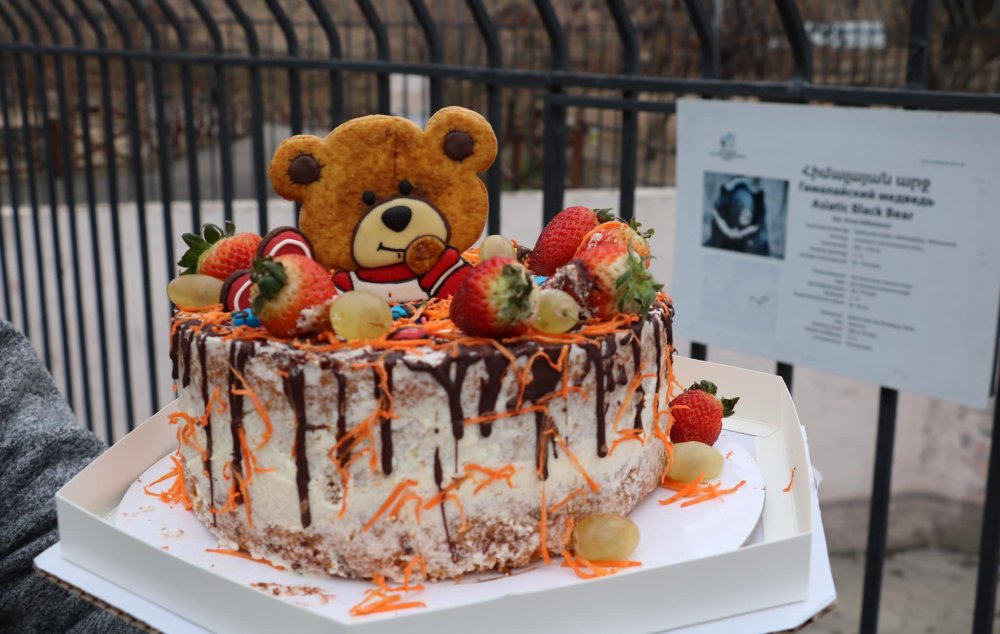 Օրվա առթիվ Կենդանաբանական այգու տարեց 2 էգերին համեղ անակնկալ մատուցվեց։ Գերդան իր սիրելի մսով տորթը համտեսեց, իսկ Ֆրունյան՝ բանջարեղենովը։