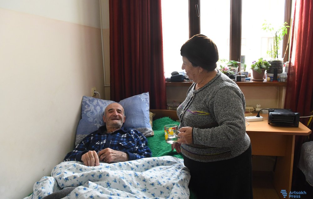 «Մեզ այս օջախում շատ ջերմ են ընդունել, ամեն օր բուժքույրերի հոգատար և ապահով ձեռքերում ենք: Ես և ամուսինս թոշակառու ենք, Ակնաղբյուրում մեր տնամերձ հողամասն էինք մշակում, անասնապահությամբ զբաղվում: Ամուսինս էլ վարորդ էր աշխատում գյուղում։ Մենք մեր աշխարհում երջանիկ էինք։ Ստեփանակերտում էլ, թեկուզ թոշակառու, բայց աշխատանքի է անցել` չնայած, որ առողջական խնդիրներ ունի, հիմա էլ ապաքինման փուլում է: Ես և ամուսինս երեխաներիս ու թոռներիս, համագյուղացիներիս ու բարեկամներիս մշտական ուշադրության կենտրոնում ենք, հոգատարությամբ են շրջապատել մեզ»,-