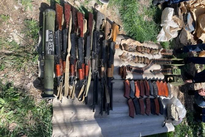 «Տեղեկացնենք, որ 2022թ. ապրիլի 11-ին, օրենքով սահմանված կարգով, խուզարկություն է իրականացվել Երևան քաղաքի բնակչի տանը, որի ընթացքում հայտնաբերվել և առգրավվել է զրահաբաճկոն, իսկ տան բակում՝ 3 հատ «АКМ», 2 հատ «АКС», 1 հատ «АК74», 3 հատ «РПК» տեսակի ինքնաձիգ, 1 հատ «РПГ» տեսակի նռնականետ, 7 հատ «Ф1» տեսակի, 6 հատ «РГД5» տեսակի նռնակ և նռնակի համար նախատեսված՝ 15 հատ պայթուցիչներ: