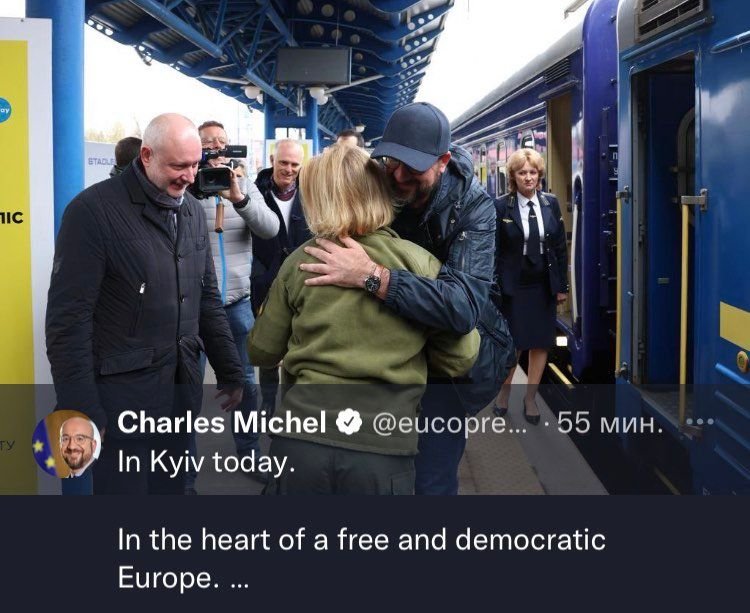 Եվրոպական խորհրդի նախագահ Շառլ Միշելը ժամանել է Ուկրաինա. «Այսօր Կիեւում, ազատ եւ ժողովրդավար Եվրոպայի սրտում», - Twitter-ում գրել է Միշելը։