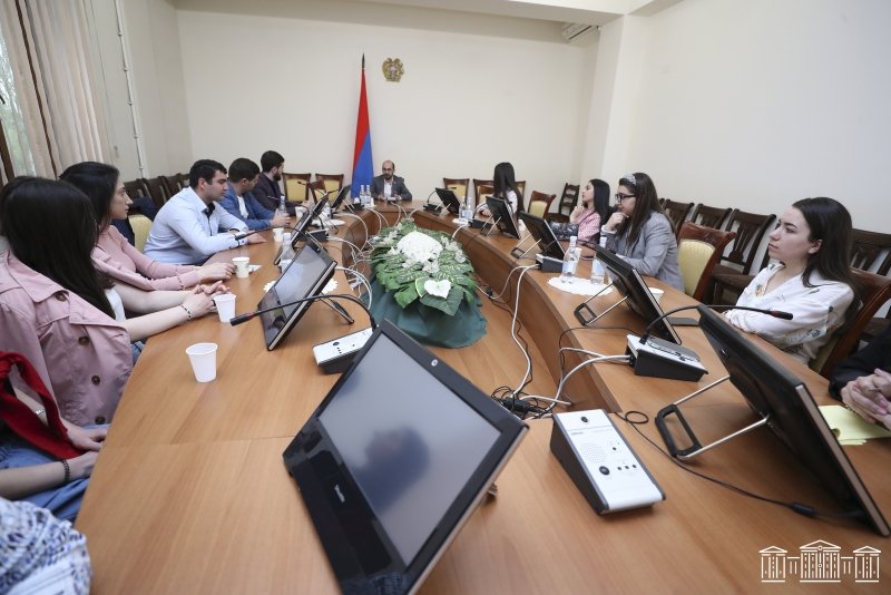 Հանդիպմանը ներկա ԵՊՀ-ի, ՊԿԱ-ի եւ Հայ-ռուսական համալսարանի ուսանողները փորձաշրջան են անցնում օրենսդիր մարմնում: