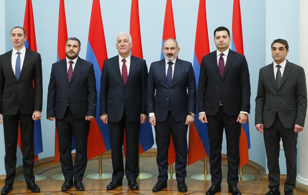 Նախագահական նստավայրում ՀՀ նախագահ Վահագն Խաչատուրյանի և վարչապետ Նիկոլ Փաշինյանի ներկայությամբ տեղի է ունեցել փոխվարչապետ Համբարձում Մաթևոսյանի, արտակարգ իրավիճակների նախարար Արմեն Փամբուխչյանի, շրջակա միջավայրի նախարար Հակոբ Սիմիդյանի և բարձր տեխնոլոգիական արդյունաբերության նախարար Ռոբերտ Խաչատրյանի երդման արարողությունը: