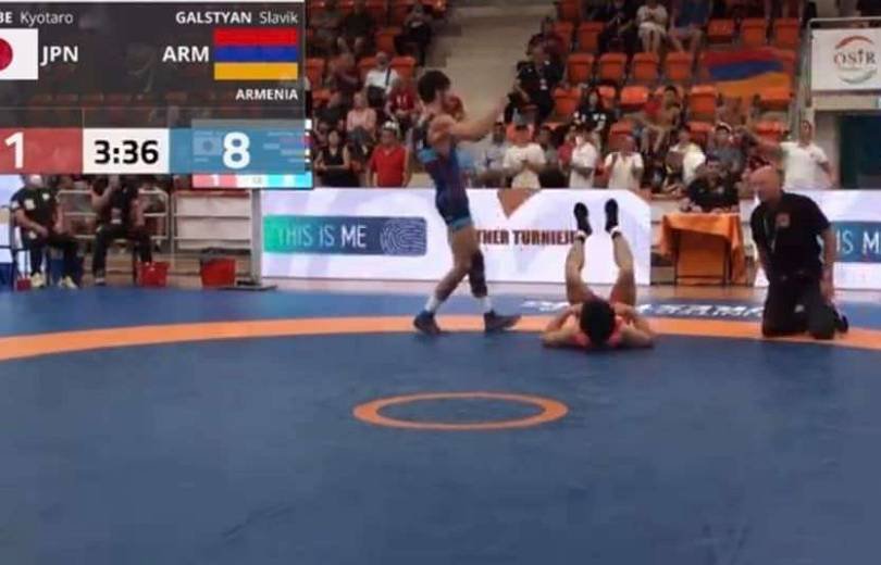 Ֆեդերացիայից հայտնում են, որ եզրափակչում՝ դիտարժան պայքարում, Գալստյանն առավելության է հասել Ճապոնիայի ներկայացուցչի նկատմամբ։