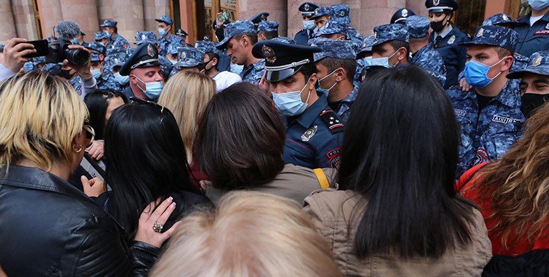 Նրանք քայլերթով մոտեցան Կառավարության շենքին, որտեղ մի քանի շարքով ոստիկաններ էին հավաքված։ Ակցիայի մասնակիցները հորդորեցին ճանապարհ բացել, իսկ հետո փորձեցին ճեղքել ոստիկանական պատնեշն ու շենք մտնել։ Կանայք ձվեր նետեցին Կառավարության շենքի և ոստիկանների ուղղությամբ։ Ոստիկանները սկսեցին բերման ենթարկել շարժման մասնակիցներից որոշներին։ Նշենք, որ ոստիկանների և ակցիայի մասնակիցների միջև հրմշտոց սկսվեց։