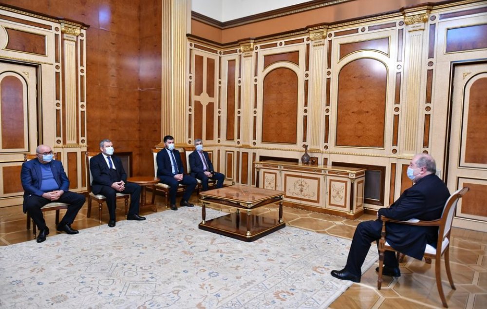 Հանրապետության նախագահ Արմեն Սարգսյանն այսօր ընդունել է «Հանրապետություն» կուսակցության նախագահ Արամ Սարգսյանին, Միավորված աշխատանքային կուսակցության հիմնադիր-նախագահ Գուրգեն Արսենյանին, «Ինքնիշխան Հայաստան» կուսակցության համահիմնադիր Դավիթ Սանասարյանին և «Արդար Հայաստան» կուսակցության նախագահ Նորայր Նորիկյանին: