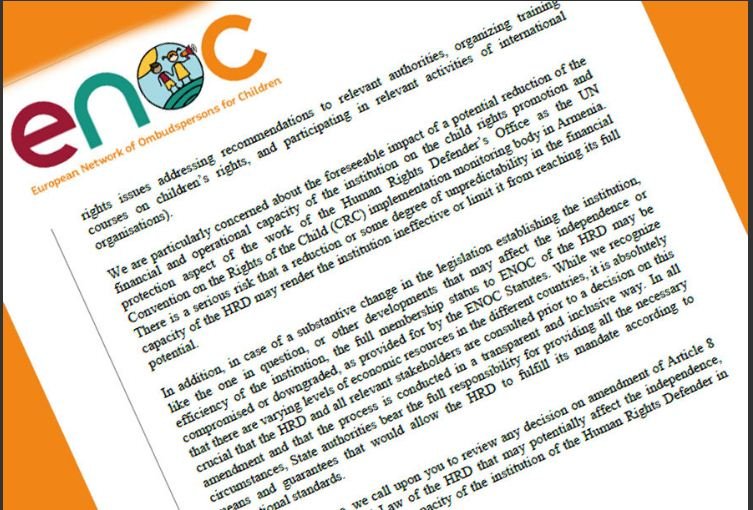 ՀՀ ՄԻՊ-ի ֆինանսական անկախության վերացումը կվտանգի Երեխաների հարցերով օմբուդսմանների ցանցում լիիրավ անդամակցությունը. ENOC-ի ղեկավարը բաց նամակով դիմել է ՀՀ ԱԺ նախագահին