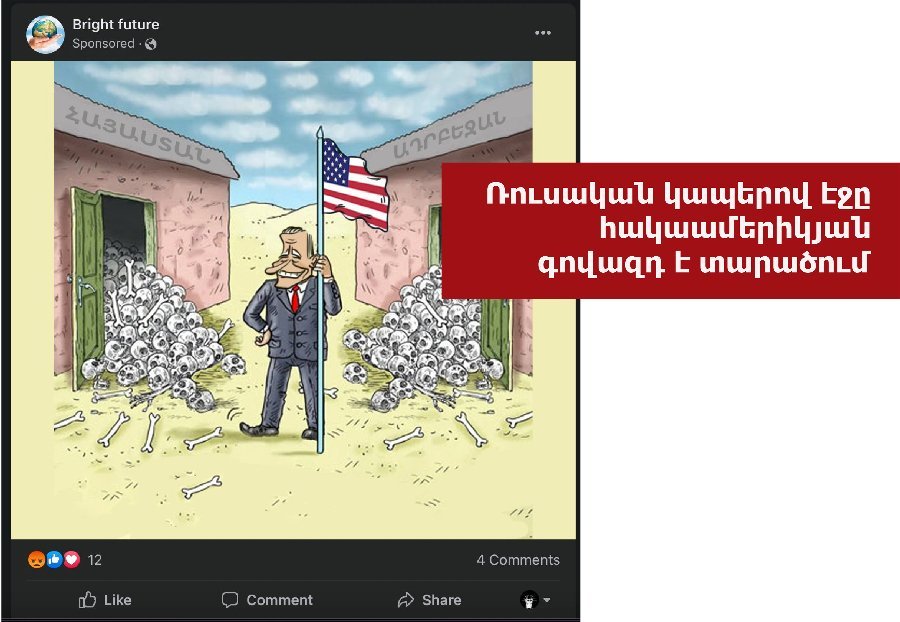 Շուրջ մեկ ամիս առաջ Ֆեյսբուքում նկատելի դարձավ գովազդով առաջարկվող ակնհայտ հակաարևմտյան, պրոռուսական բովանդակություն տարածող Bright future անունով ֆեյսբուքյան էջը, որի նյութերը տարածվում էին գովազդի տակ: