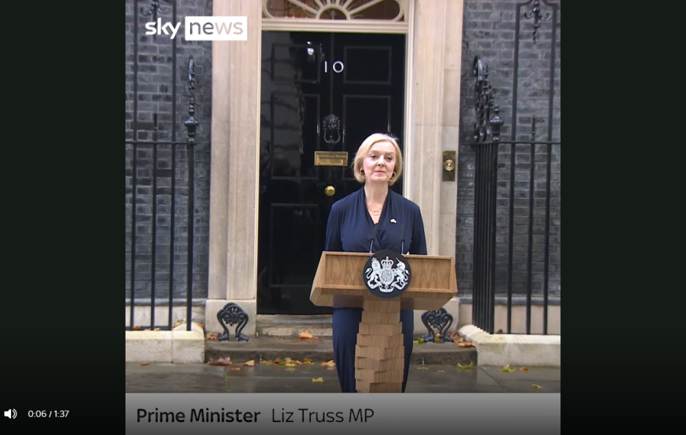 «Ես պաշտոնավարեցի մեծ տնտեսական և միջազգային անկայունության ժամանակահատվածում, երբ ընտանիքները, բիզնեսները անհանգստանում են, թե ինչպես վճարեն հարկերը, Ուկրաինայում տիրող իրավիճակը սպառնում է տարածաշրջանի անվտանգությանը։ Ես ընտրվել էի Պահպանողական կուսակցության կողմից փոխելու իրավիճակը։ Սակայն գիտակցում եմ, որ չեմ կարող պահել մանդատը, որը տրվել է կուսակցության կողմից։ Եվ ես հրաժարական եմ տալիս որպես Պահպանողական կուսակցության ղեկավար»,-ասել է Մեծ Բրիտանիայի վարչապետը։