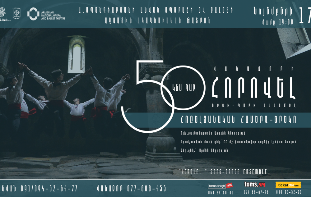 Նոյեմբերի 17-ին Օպերայի և Բալետի ազգային ակադեմիական թատրոնի բեմահարթակից իր 50-րդ հոբելյանական համերգաշրջանը կավարտի Վանաձորի «Հորովել» երգի-պարի անսամբլը։ Անսամբլի կեսդարյա պատմությունն իր մեջ ամփոփում է հայ ժողովրդական երգի և պարի յուրօրինակ բեմական մշակումներ, որոնք տաղանդավոր արտիստների արդեն մի քանի սերունդ մեծ նվիրումով ներկայացնում է իր հանդիսատեսին ինչպես Հայաստանում, այնպես էլ երկրի սահմաններից դուրս։