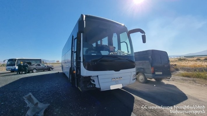 Նոյեմբերի 2-ին, ժամը 12:09-ին Ճգնաժամային կառավարման ազգային կենտրոն ահազանգ է ստացվել, որ Արարատի մարզի Արտաշատ-Վեդի ավտոճանապարհին տեղի է ունեցել ՃՏՊ՝ ավտոբուսը բախվել է մարդատար ավտոմեքենային․ կան տուժածներ։