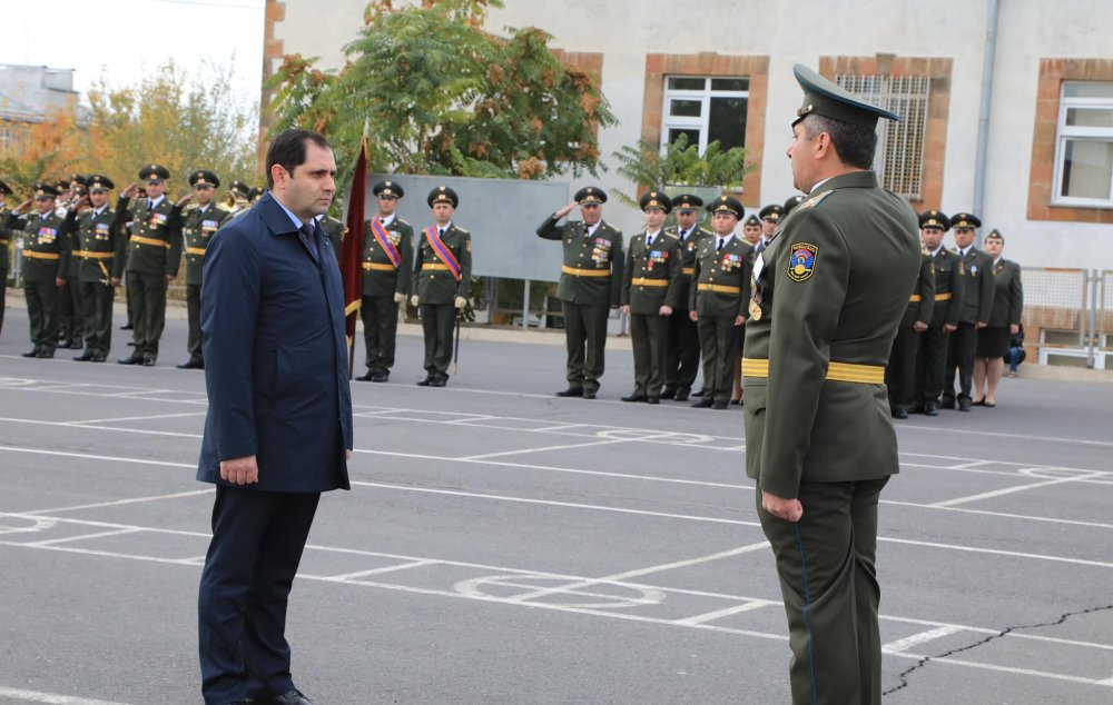 Նախքան հանդիսավոր միջոցառման մեկնարկը, ՀՀ պաշտպանության նախարար Սուրեն Պապիկյանը և ԶՈՒ ԳՇ պետ, պաշտպանության նախարարի առաջին տեղակալ, գեներալ-մայոր Էդվարդ Ասրյանը ծաղիկներ են խոնարհել 44-օրյա պատերազմի և դրան հաջորդած մարտական գործողությունների ընթացքում անմահացած զինծառայողների հիշատակը հավերժացնող հուշանկյանն ու խաչքարին։