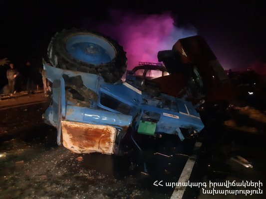 Պարզվել է, որ Մարմաշենի խճուղու 3-րդ կմ-ում բախվել են «Opel Zafira» մակնիշի ավտոմեքենան (վարորդ՝ Լ․ Թ․, ծնված 1981 թ.) և «Belarus 80» մակնիշի տրակտորը (հակավորիչ սարքով) (վարորդ՝ Վ․ Շ․ ծնված 1969 թ.)։ Պատահարի հետևանքով «Belarus 80» մակնիշի տրակտորը կողաշրջվել է, իսկ «Opel Zafira» մակնիշի ավտոմեքենան՝ բռնկվել: