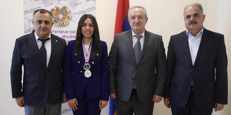 ՀՀ կրթության, գիտության, մշակույթի և սպորտի նախարար Վահրամ Դումանյանն այսօր ընդունել է Հայաստանի շախմատի կանանց հավաքականի անդամ Մարիամ Մկրտչյանին, որն օրերս Թուրքիայի Անթալիա քաղաքում անցկացված Եվրոպայի պատանեկան առաջնության Մ18 տարեկանների մրցաշարում նվաճել էր չեմպիոնի տիտղոսը: