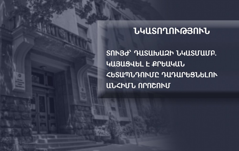 Նշված որոշումը հետագայում վերացվել է վերադաս դատախազի կողմից: