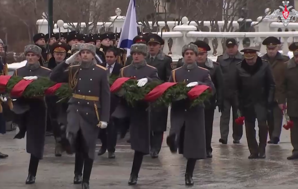 Ռուսաստանի պաշտպանության նախարար Սերգեյ Շոյգուն ՇՀԿ անդամ երկրների և ԱՊՀ անդամ երկրների պաշտպանական գերատեսչությունների ղեկավարների հետ ծաղիկներ է դրել Մոսկվայի Ալեքսանդրյան պարտեզում գտնվող Անհայտ զինվորի գերեզմանին։