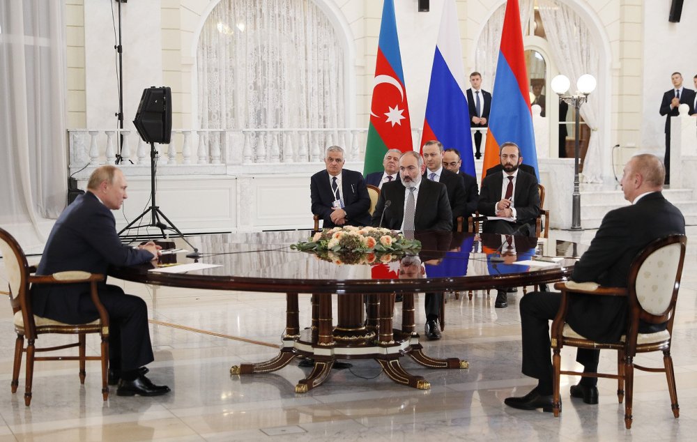 Ռուսաստանի, Հայաստանի և Ադրբեջանի ղեկավարների՝ Վլադիմիր Պուտինի, Նիկոլ Փաշինյանի և Իլհամ Ալիևի եռակողմ հանդիպման համաձայնեցման շուրջ աշխատանքները շարունակվում են, նրանք առնվազն կկարողանան բանակցել ԱՊՀ պետությունների ղեկավարների ոչ պաշտոնական գագաթնաժողովի շրջանակում։ Այս մասին լրագրողներին հայտնել է ՌԴ նախագահի մամուլի քարտուղար Դմիտրի Պեսկովը։