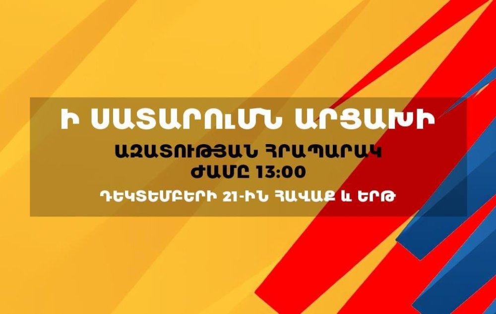 Դեկտեմբերի 21-ին, ժամը 13:00-ին «Արցախի Հանրապետության ճանաչում» քաղաքացիական նախաձեռնությունը հավաք և երթ է հրավիրում՝ ի սատարումն Արցախի: