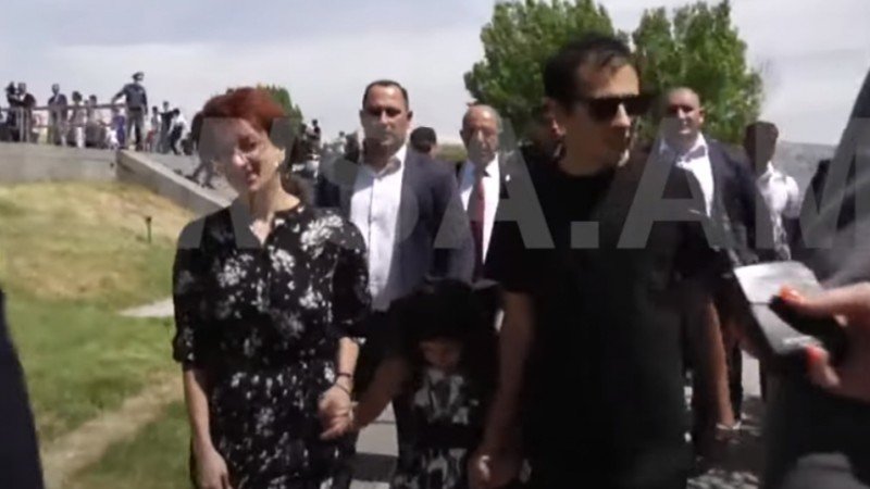 Աննա Հակոբյանը դստեր ու որդու հետ այցելել է Ծիծեռնակաբերդ, սակայն չի ցանկացել պատասխանել լրագրողների հարցերին: