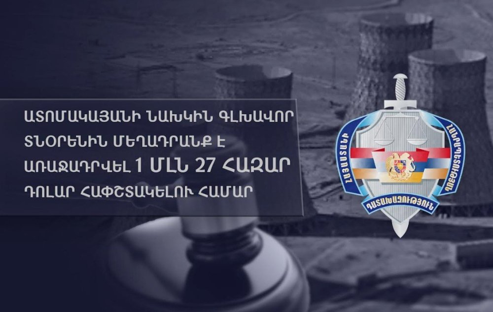 2002-2014 թվականներին «Հայկական ատոմային էլեկտրական կայան» ՓԲԸ-ի գլխավոր տնօրենի պաշտոնը զբաղեցրած Գ.Մ.-ն իրեն վստահված միջոցներից վատնման եղականով հափշտակել է առանձապես խոշոր չափերի՝ 1 մլն 27 հազար 470,9 ԱՄՆ դոլար (383 մլն 883 հազար 678 դրամ). տեղեկացնում են ՀՀ գլխավոր դատախազությունից։