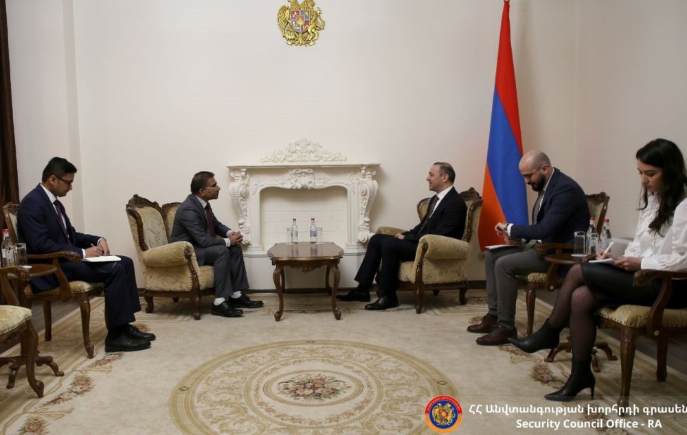 ԱԽ քարտուղար Արմեն Գրիգորյանն այսօր ընդունել է Հայաստանում Հնդկաստանի արտակարգ և լիազոր դեսպան Ն.Գ. Կիշան Դան Դեվալին, որն ավարտում է իր դիվանագիտական առաքելությունը մեր երկրում: