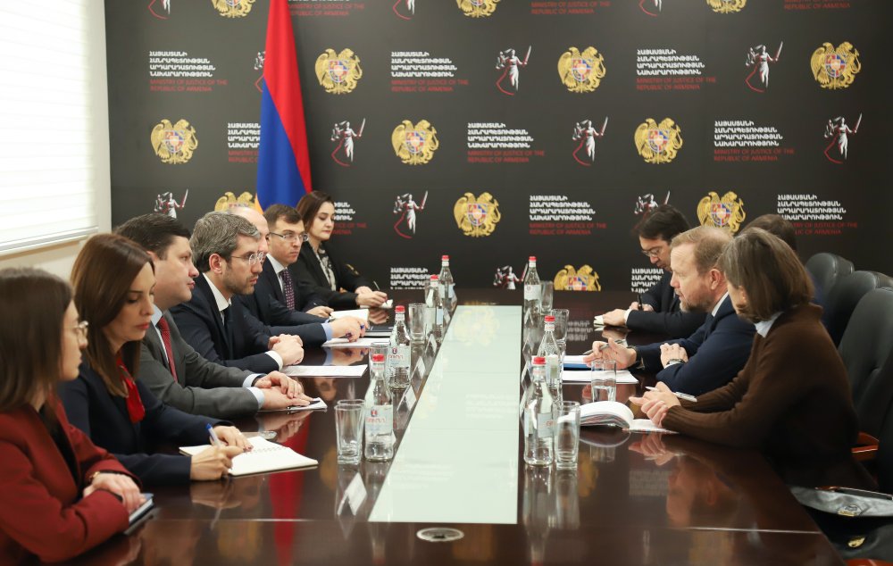 Արդարադատության նախարար Գրիգոր Մինասյանն ընդունել է Եվրոպայի խորհրդի գլխավոր քարտուղարի տեղակալ Բյորն Բերգեի գլխավորած պատվիրակությանը: