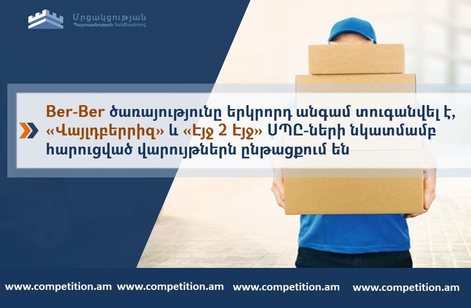 Մրցակցության պաշտպանության հանձնաժողովը շարունակում է ուսումնասիրել արտասահմանից ՀՀ առաքման ծառայություններ մատուցող տնտեսվարող սուբյեկտների վարքագիծը: Ուսումնասիրության արդյունքում ««Հայփոստ» ՓԲԸ և «Հայփոստ Յու Էս Էյ Քորպ.» կորպորացիա» անձանց խմբի (Ber-Ber ծառայություն), «Վայլդբերրիզ» ՍՊԸ-ի և «Էյջ 2 Էյջ» ՍՊԸ-ի վերաբերյալ հարուցվել են վարույթներ՝ առաքումների ժամկետների առնչությամբ կատարված հրապարակումների միջոցով հասարակության մոլորեցման դրսևորմամբ անբարեխիղճ մրցակցության հատկանիշներով: