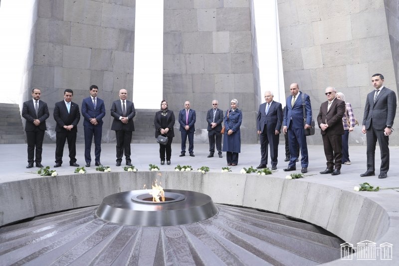 Հյուրերը ծաղիկներ են խոնարհել Հայոց ցեղասպանության հիշատակը հավերժացնող անմար կրակի մոտ, լռությամբ հարգել Սուրբ նահատակների հիշատակը: