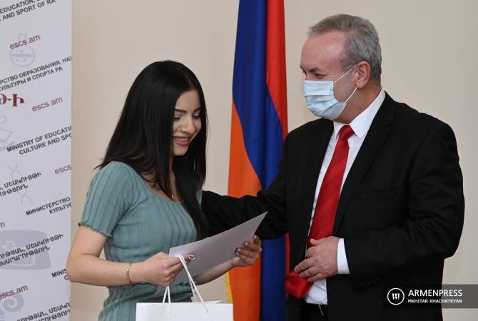 Մրցանակները հանձնել է ՀՀ կրթության, գիտության, մշակույթի և սպորտի նախարար Վահրամ Դումանյանը: