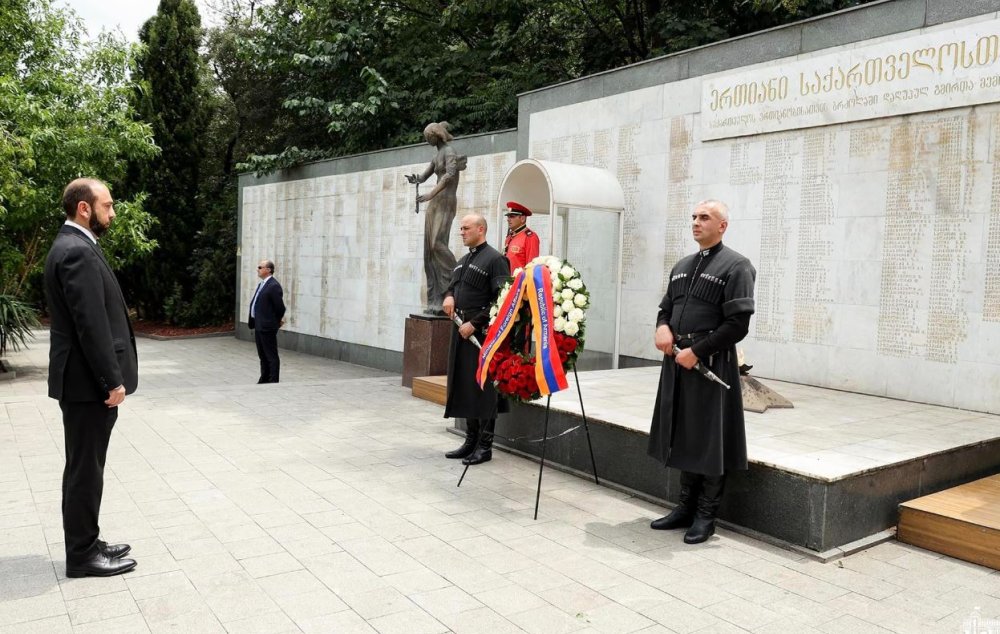 Թբիլիսի այցի շրջանակներում ՀՀ ԱԳ նախարար Արարատ Միրզոյանը ծաղկեպսակ է զետեղել «Հերոսների հրապարակ» հուշահամալիրի մոտ․ տեղեկացնում են ՀՀ ԱԳՆ-ից։ Պաշտոնական արարողության ժամանակ հնչել են Հայաստանի և Վրաստանի պետական օրհներգերը: