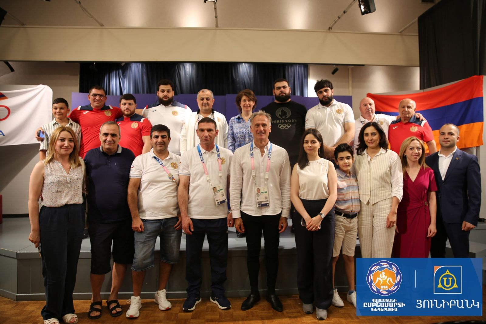 Փարիզի Օլիմպիական խաղերի նորընծա փոխչեմպիոն, գերծանր քաշային ծանրորդ Վարազդատ Լալայանը, բրոնզե մեդալակիր Գոռ Մինասյանը, ծանրորդներ Գարիկ Կարապետյանն ու Անդրանիկ Կարապետյանն այսօր հյուրընկալվել են Ֆրանսիայի մայրաքաղաքում գործող «Հայաստանի օլիմպիական տանը», հանդիպել հայ համայնքի ներկայացուցիչների և երկրպագուների հետ: Այդ մասին տեղեկացնում են ԿԳՄՍ նախարարությունից։