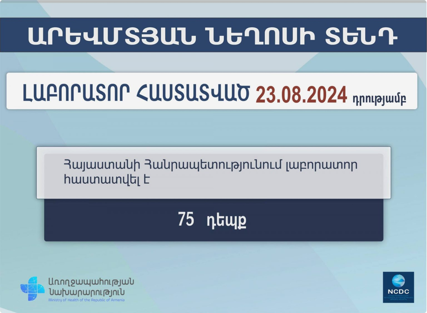 Հիվանդությունների վերահսկման և կանխարգելման ազգային կենտրոնից հայտնում են, որ վարակվածներն այժմ 75-ն են։