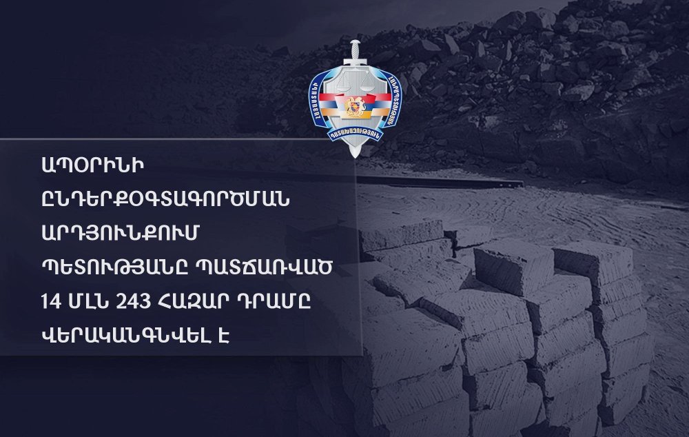 Նախաքննության ընթացքում ստացվել է փորձագետի եզրակացությունը, որով ապօրինի օգտագործված տուֆի մարված պաշարի համար հաշվարկված բնօգտագործման վճարի մեծությունը՝ պետությանը պատճառված վնասը, կազմել է 3 մլն 445 հազար 700 դրամ: