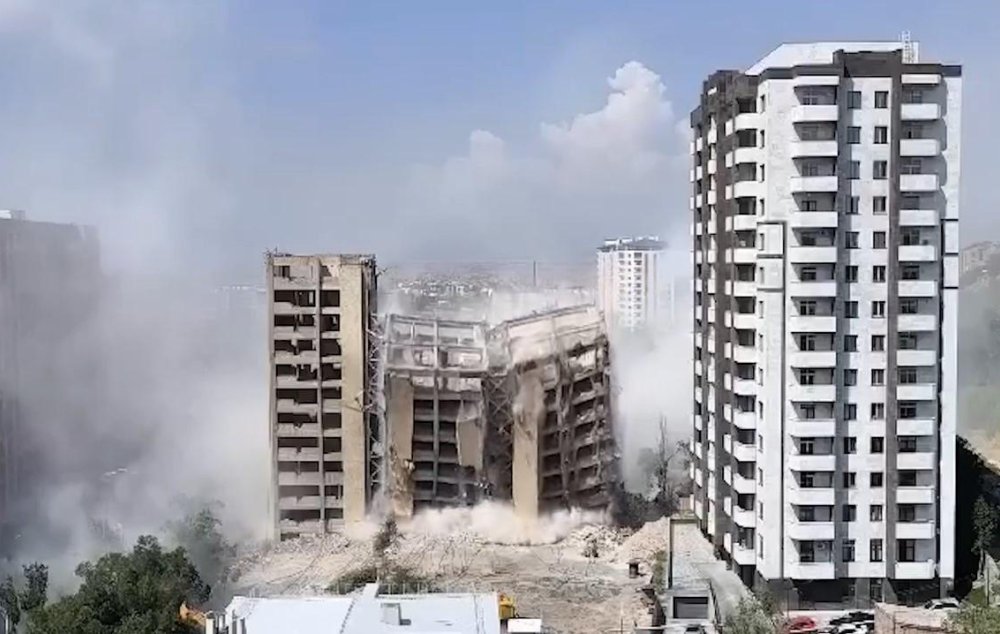 մոտեցող փոշու մեծ ամպից, իսկ շենքը փլուզող աշխատակիցներն անգամ սաղավարտներ չեն կրում։
