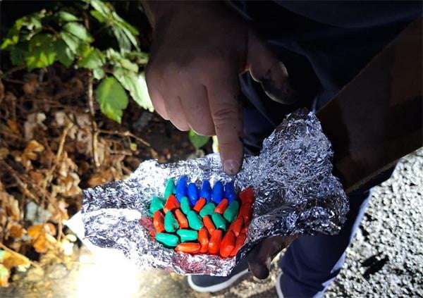 Մասնավորապես՝ անձնական խուզարկությամբ հիշյալ անձանցից մեկի մոտ հայտնաբերվել է թվով 30 տարբեր գույնի կպչուն ժապավեններով փաթեթներ, իսկ Երևան քաղաքի Ֆանարջյան փողոցում գտնվող Զեյթունի գերեզմանատան ավտոճանապարհի մայթեզրին կից խոտածածկ տարածքում կատարված դեպքի վայրի զննությամբ՝ թվով 90 տարբեր գույնի կպչուն ժապավեններով փաթեթներ։