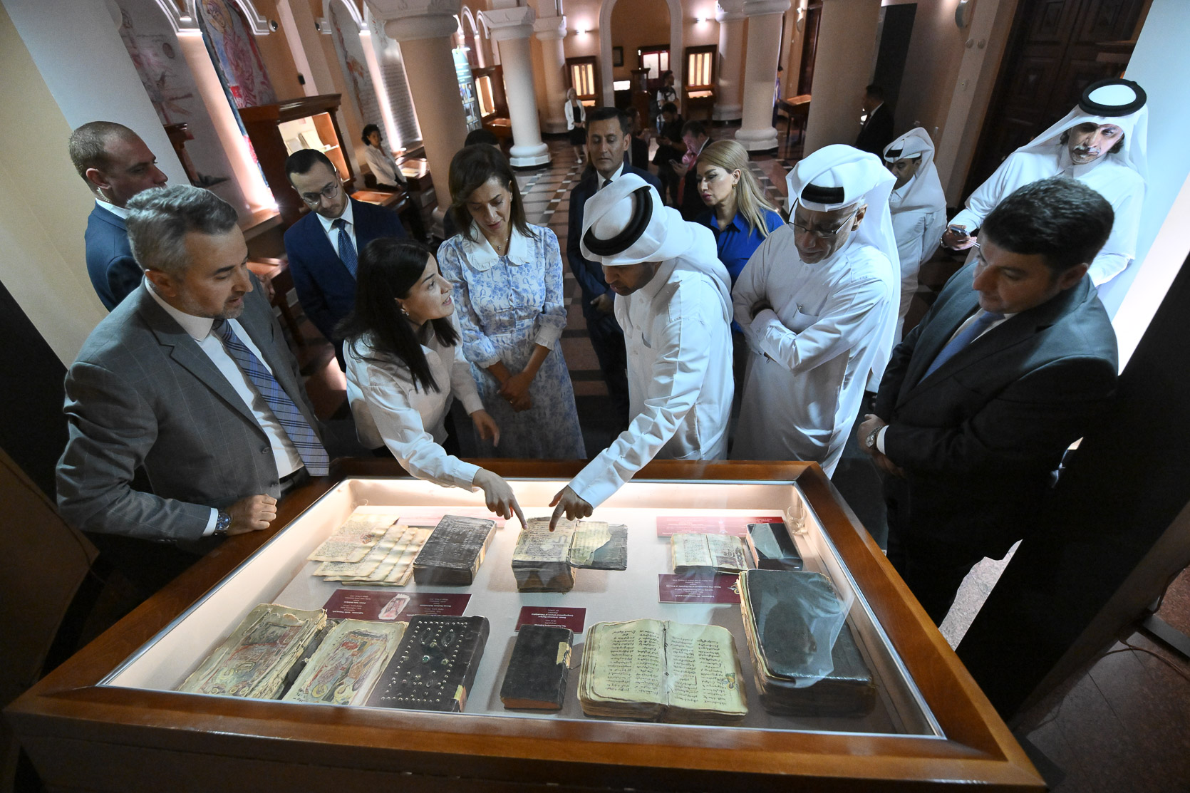 Նախաճաշից հետո Կատարից ժամանած հյուրերը վարչապետի տիկնոջ հրավերով և ուղեկցությամբ այցելել են նաև Մատենադարան, որտեղ նրանց է միացել նաև «Իմ Քայլը» բարեգործական հիմնադրամի հոգաբարձուների խորհրդի նախագահ, ՀՀ բարձր տեխնոլոգիական արդյունաբերության նախարար Մխիթար Հայրապետյանը և Հայաստանում Կատարի պետության գործերի հավատարմատար Մուհամմադ Յուսեֆ Ալ-Մուդզաֆերը։ Հյուրերին է ներկայացվել Մատերանադարանը, այնտեղ պահվող ձեռագրերի պատմությունը, թվագրությունը: Հյուրերը շրջել են մշտական և ժամանակավոր ցուցասրահներում, ծանոթացել հիմնական ցուցադրվող և նոր ձեռք բերված ձեռագրերին: Հյուրերին ներկայացվել է նաև հայերեն ամենամեծ ձեռագիրը` «Մշո ճառընտիր»-ը: Այս կերպ հյուրերին փոխանցել են հայերի` դարերից եկող վերաբերմունքը դեպի գիրը: Կատարից ժամանած հյուրերը ուսումնասիրել են նաև Մատենադարանում պահվող այլալեզու, այդ թվում՝ արաբատառ ձեռագրերի հավաքածուն, որոնց թիվը հասնում է 3000-ի: Կատարից ժամանած հյուրերը եղել են նաև ձեռագրերի վերականգման բաժնում, հետևել ընթացքին, ծանոթացել վերականգման մեթոդներին: Մասնագետները ցուցադրել են 16-րդ դարին թվագրվող «Հայսմավուրք» ձեռագիրը, որն անցել է Եղեռնի ճանապարհով և Հայաստան հասել շատ վատ վիճակում: Գրքի վնասված բոլոր էջերն ու կազմը վերականգնվել է Մատենադարանում:
